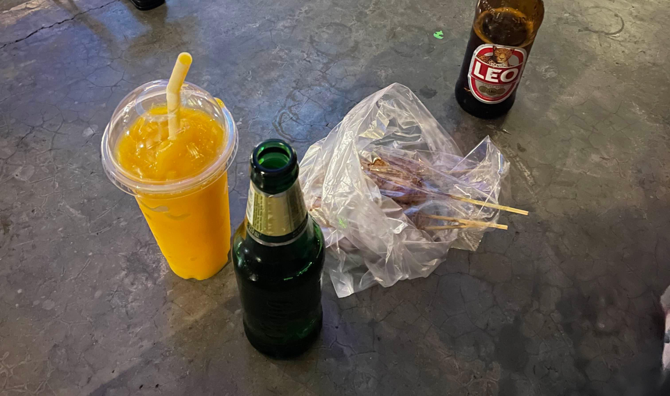 밖에서 최애 꼬치집에서 꼬치 사오고 맥주 한잔씩 마셨어요.
